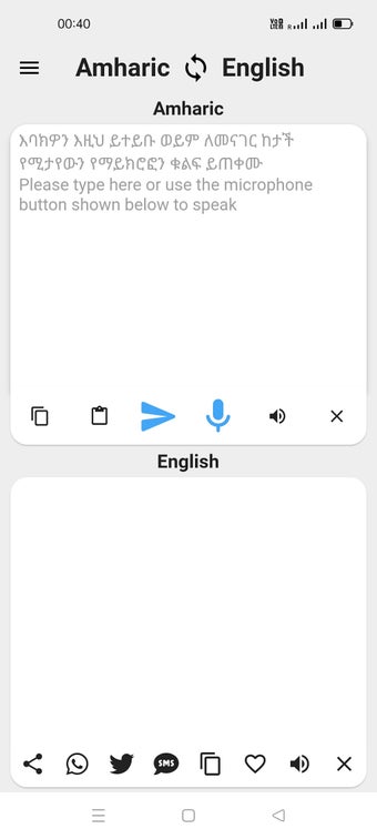 Amharic To English Translator, Amharic dilinden İngilizceye ve İngilizceden Amharice çeviri yapabilen basit bir uygulamadır. Kullanıcı dostu arayüzü ile metin, cümle ve kelimeleri kolayca çevirebilirsiniz. Uygulama, sesle metin girişi özelliği sunarak, kullanıcıların yalnızca konuşarak çeviri yapmalarını sağlar. Ayrıca çevirilen metinlerin telaffuzunu dinleme imkanı da mevcuttur.